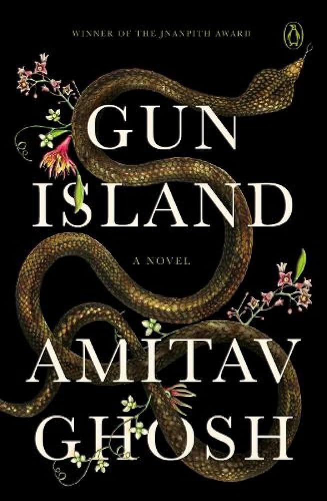 കാലാവസ്ഥാ വ്യതിയാനം ഇതിവൃത്തമാക്കിക്കൊണ്ട് പ്രശസ്ത ഇന്ത്യൻ - ഇംഗ്ലീഷ് എഴുത്തുകാരൻ അമിതാവ് ഘോഷ് എഴുതിയിട്ടുള്ള നോവൽ ശ്രദ്ധേയമാണ് - 'ഗൺ ഐലൻഡ് ' . ഇത് പ്രകൃതിയുടെ പ്രതികാരവും, കുടിയേറ്റവും, മനുഷ്യനും പ്രകൃതിയും തമ്മിലുള്ള ബന്ധത്തിന്റെ തകർച്ചയും പറയുന്ന കഥയാണ്.