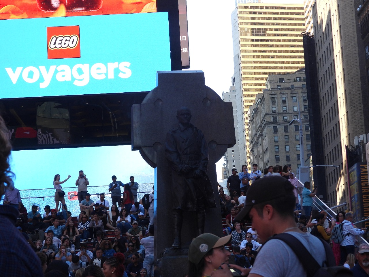 നേരം വൈകിയപ്പോഴേക്കും ഞങ്ങൾ പ്രസിദ്ധമായ ടൈംസ്ക്വയറിലെത്തി. ടൈം സ്ക്വയർ എന്ന പേര് ഈ സ്ട്രീറ്റിന് വരാൻ കാരണം 1904ൽ ന്യൂയോർക്ക് ടൈംസ് ന്യൂസ് പേപ്പർ ആസ്ഥാനം ഇവിടേക്ക് മാറ്റിയതാണ്. യഥാർത്ഥത്തിൽ ഇത് മാൻഹാട്ടൻ മിഡ്ടൗണിൽ ഏഴാം അവന്യു വിൽ (7th Avenue) നാല്പത്തിരണ്ടാമത് സ്ട്രീറ്റാണ്. എങ്ങും LED വെളിച്ചവും ഡിജിറ്റൽ പരസ്യ ബോഡുകളും ഇലക്ട്രോണിക് ഡിസ്പ്ലേകളുമുള്ള സ്ട്രീറ്റിൽ ആർക്കും വരാം, പാട്ടു പാടാം, നൃത്തം ചെയ്യാം, പ്രസംഗിക്കാം ചുമ്മാ അലഞ്ഞ് നടക്കാം. രാത്രി 7 മണിയോടെ സജീവമാകുന്ന സ്ട്രീറ്റിൽ കേരള മുഖ്യമന്ത്രി പിണറായി വിജയൻ ഇരുമ്പ് കസേരയിലിരുന്ന സ്ഥലത്ത് ഒരു ആഫ്രോ-അമേരിക്കൻ പാട്ടുപാടി നൃത്തം ചെയ്ത് മൊബൈൽ വീഡിയോയിൽ പകർത്തുന്നു. മറ്റൊരിടത്ത് പല നിറത്തിൽ തലമുടി ഒരുക്കിയ കുറെപ്പേർ ഒരുമിച്ചിരിക്കുന്നു. മിക്കി മൗസും കരടിയും ആൾക്കുരങ്ങും സ്പൈഡർമാനുമൊക്കെ സഞ്ചാരികളെ സ്വാഗതം ചെയ്യുകയും ഒപ്പം ഫോട്ടോയെടുക്കുകയും മറ്റും ചെയ്യുന്നു. മിക്കി മൗസ് എൻ്റടുത്ത് വന്ന് നമസ്തേയെന്ന് പറഞ്ഞപ്പോൾ ഞാൻ ഇന്ത്യക്കാരനെന്ന് വേഷം കെട്ടിയ അവൾക്ക് മനസിലായെന്ന് എനിക്കുറപ്പായി. പക്ഷേ ഒപ്പം നിന്ന് ഫോട്ടോ എടുത്താൽ തുടർന്ന് പണം കൊടുക്കണം. എൻ്റെ കൈയ്യിൽ ഡോളറുകൾ ഇല്ലാതിരുന്നതിനാൽ ഞാൻ ഒഴിഞ്ഞു മാറി. തൊട്ടപ്പുറത്ത് കുറച്ച് ആഫ്രോ-അമേരിക്കക്കാർ ചെറിയ സൗണ്ട് സിസ്റ്റവും വാദ്യങ്ങളും ഉപയോഗിച്ച് പാട്ടുപാടുകയും ഡാൻസ് ചെയ്യുകയും ചെയ്യുന്നു. അല്പം മാറി സ്റ്റേജിൽ അമേരിക്കൻ ബംഗാളികൾ ദുർഗാ പൂജയുമായി ബന്ധപ്പെട്ട് പെൺകുട്ടികളുടെ നൃത്തം അവതരിപ്പിക്കുന്നു. ഇതിനിടയിൽ പഴം നുറുക്കും പഴച്ചാറുകളും വിവിധ തരം സ്നാക്സുകളും ചെറിയ ട്രോളികളിൽ കച്ചവടം നടത്തുന്നു. പലതരം വേഷം ധരിച്ചവർ ( നമ്മുടെ ഫാൻസി ഡ്രസ് പോലെ) നമ്മുടെ കരം ഗ്രഹിച്ച് നൃത്തത്തിനായി ക്ഷണിക്കുന്നു. അലസമായി വസ്ത്രം ധരിച്ചും (ഏറെയും അല്പ വസ്ത്രം) സ്നാക്സ് കഴിച്ചും , ന്യൂയോർക്ക് സ്പെഷൽ പീസയും ( Pizza ) യും Cheese steakനൊപ്പം കോളയും ജൂസും കുടിച്ചും ആടിയും പാടിയും ഇവിടെയെത്തുന്നവർ പാതിരാത്രിയിലും തുടരുന്നു. മികച്ച ഹോട്ടലുകൾക്കിടയിൽ ദക്ഷിണേന്ത്യൻ ഭക്ഷണങ്ങൾ ലഭിക്കുന്ന' ചട്ടി' റസ്റ്റോറൻ്റ് ഉണ്ടെന്നറിഞ്ഞെങ്കിലും സമയ